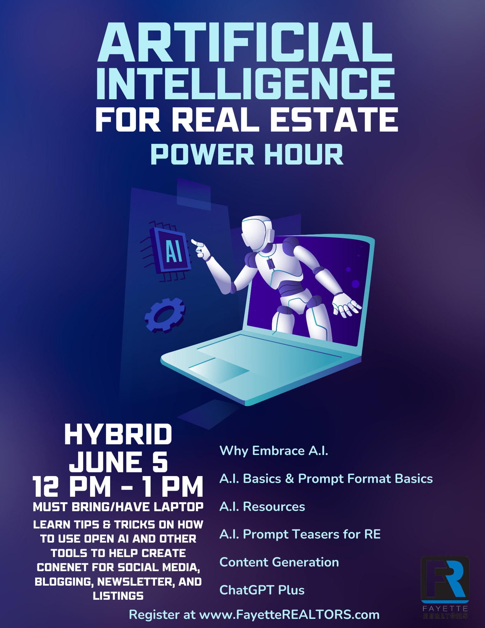 Learn tips & tricks on how to use Open AI and other tools to help create content for Social Media, blogging, newsletter, and listings. Instructor Mark Simpson