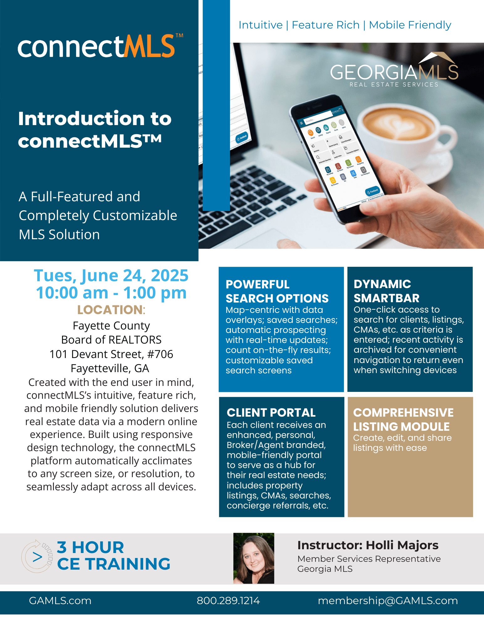 ** Canceled ** ConnectMLS is GAMLS's new platform for inputting your listings, sending automatic emails to clients, recommending service partners, build a CMA, and most of all, search for properties. They will teach you how to set up your clients and create their portal. You can also communicate with your clients through this platform, similar to social media.